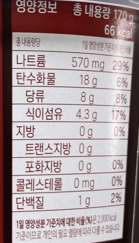 추가로, 제일 중요한 영양성분표 참고하세요~