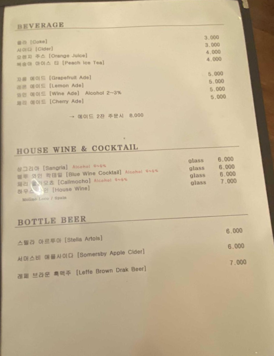 그리고 제일 중요한 비스트로사랑방의 메뉴판입니다.