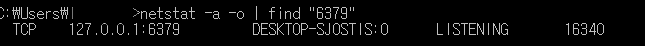 cmd 에서 6379로 검색하였을때 LISTENING이 뜰 경우 성공적으로 설치완료 된 것입니다!