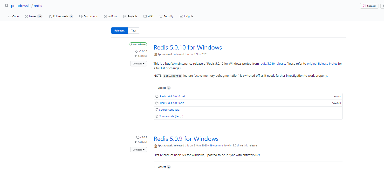Releases · tporadowski/redis