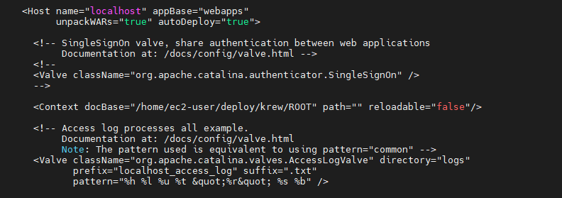 <Context docBase="/home/ec2-user/deploy/ROOT" path="" reloadable="false"/>