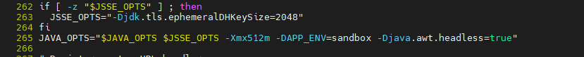 JAVA_OPTS="-Xmx512m -DAPP_ENV=sandbox -Djava.awt.headless=true"