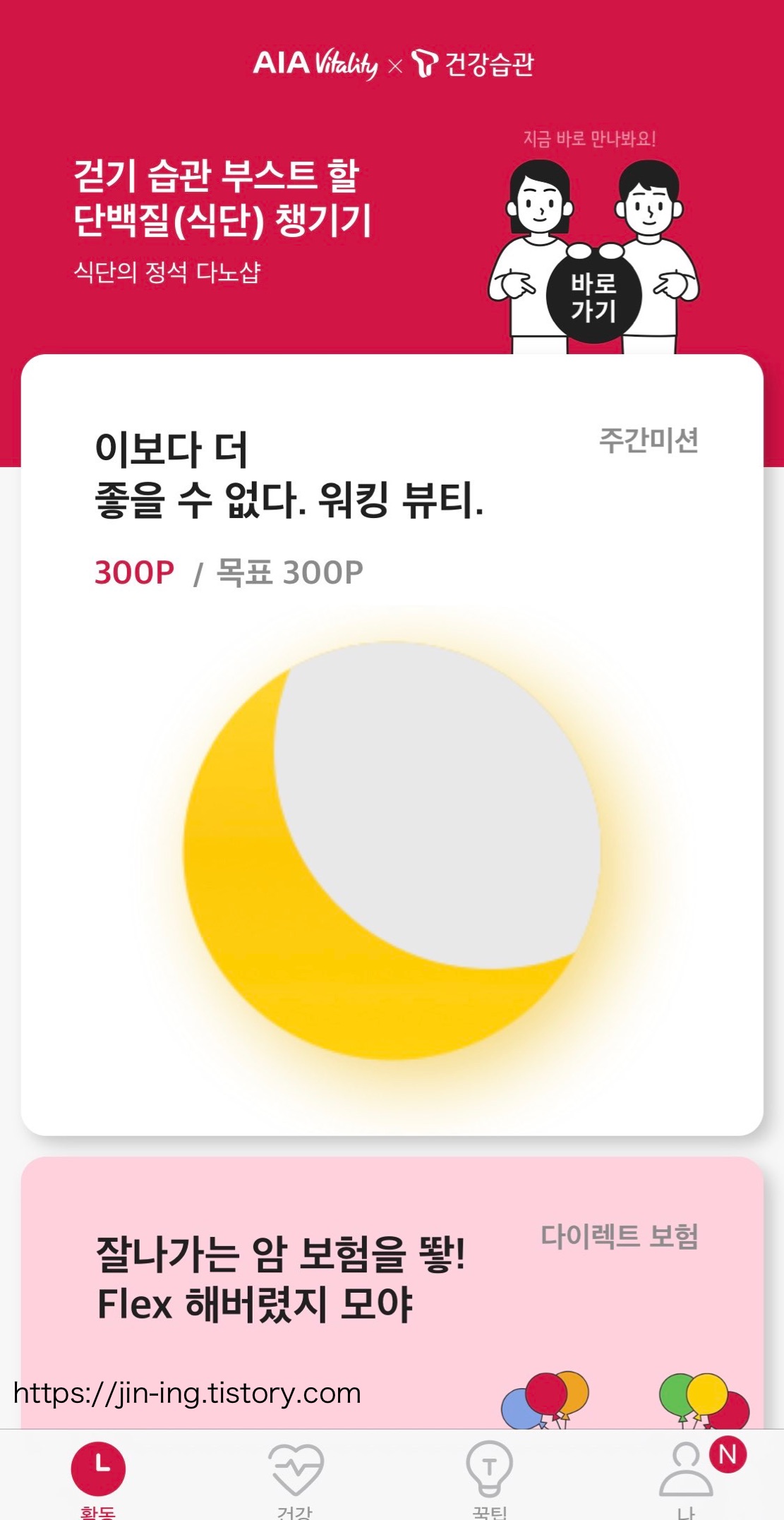 AIA Vitality x T건강습관 어플은 매주 목표 포인트를 달성하고,