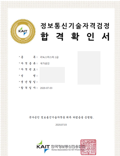 최근 6월 13일에 있었던 2급 2차 시험에 합격하여 리눅스 마스터 2급 시험에 대하여 시험일정과 제가 했었던 공부방법을 이야기 해보려고 합니다!